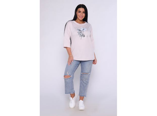 Туника из натурального хлопка прекрасный вариант для повседневного образа. Оригинальный принт с использованием глиттера украшает модель, придавая ей изысканный вид. Обработка деталей вкруговую с закрепкой, рукав длиной 3/4, горловина втачная из основной ткани. Большие размеры.
