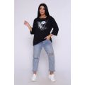Туника из натурального хлопка прекрасный вариант для повседневного образа. Оригинальный принт с использованием глиттера украшает модель, придавая ей изысканный вид. Обработка деталей вкруговую с закрепкой, рукав длиной 3/4, горловина втачная из основной ткани. Большие размеры.
