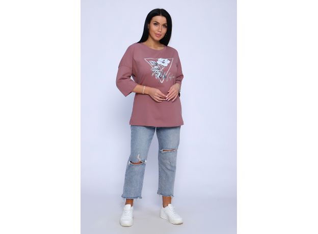 Туника из натурального хлопка прекрасный вариант для повседневного образа. Оригинальный принт с использованием глиттера украшает модель, придавая ей изысканный вид. Обработка деталей вкруговую с закрепкой, рукав длиной 3/4, горловина втачная из основной ткани. Большие размеры.