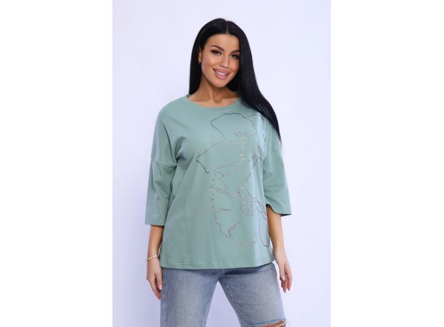 Туника из натурального хлопка прекрасный вариант для повседневного образа. Будет комфортна и как базовый вариант к классическим брючкам, так и к стилю спортшик. Принт в виде большого цветка лилии с использованием глиттера и техники объёмной печати украшает модель, придавая ей изысканный вид. Обработка деталей вкруговую с закрепкой, рукав длиной 3/4, горловина втачная из основной ткани. Большие размеры!