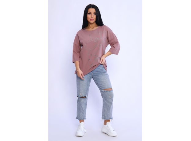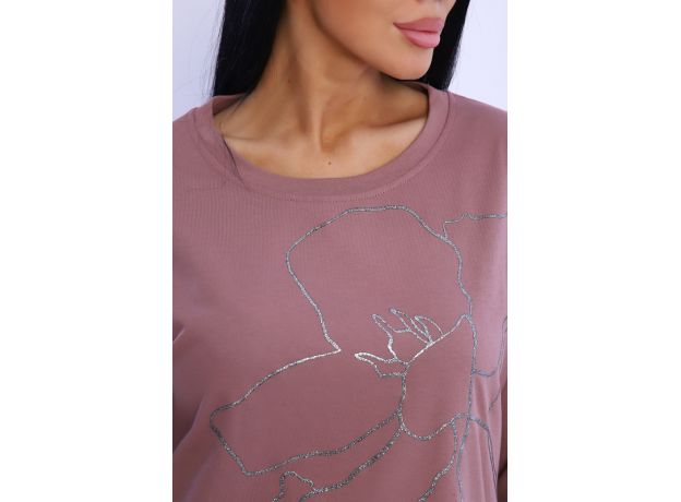 Туника из натурального хлопка прекрасный вариант для повседневного образа. Будет комфортна и как базовый вариант к классическим брючкам, так и к стилю спортшик. Принт в виде большого цветка лилии с использованием глиттера и техники объёмной печати украшает модель, придавая ей изысканный вид. Обработка деталей вкруговую с закрепкой, рукав длиной 3/4, горловина втачная из основной ткани. Большие размеры!