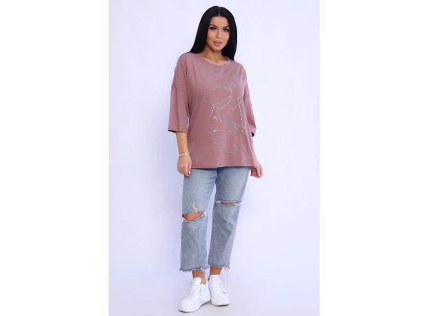 Туника из натурального хлопка прекрасный вариант для повседневного образа. Будет комфортна и как базовый вариант к классическим брючкам, так и к стилю спортшик. Принт в виде большого цветка лилии с использованием глиттера и техники объёмной печати украшает модель, придавая ей изысканный вид. Обработка деталей вкруговую с закрепкой, рукав длиной 3/4, горловина втачная из основной ткани. Большие размеры!