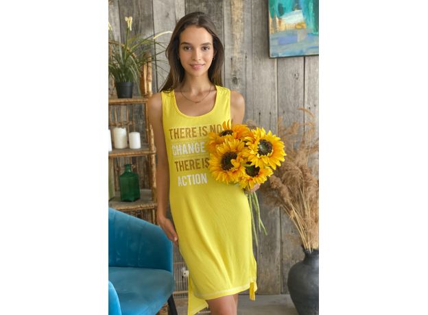 Туника полуприлегающего силуэта средней длины, с округлой горловиной, без рукавов, с удлиненной спинкой. В верхней части спинки расположена кокетка. В нижней части боковых швов обработаны разрезы.
