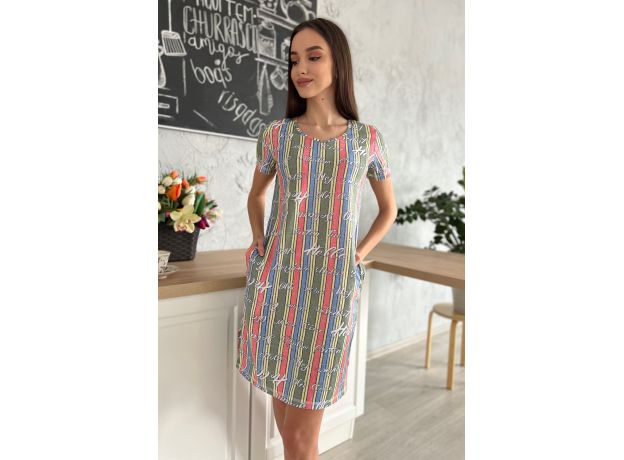 Туника полуприлегающего силуэта, с боковыми карманами, средней длины, с V-образной горловиной. Рукав втачной. На спинке обработан фигурный вырез. В нижней части боковых швов обработаны разрезы. Горловина и вырез на спинке обработаны бейкой из основного полотна.