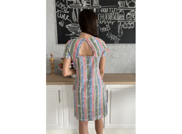 Туника полуприлегающего силуэта, с боковыми карманами, средней длины, с V-образной горловиной. Рукав втачной. На спинке обработан фигурный вырез. В нижней части боковых швов обработаны разрезы. Горловина и вырез на спинке обработаны бейкой из основного полотна.