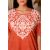 Туника прямого силуэта, с округлой горловиной, с разрезами в нижней части боковых швов. Горловина и низ рукавов обработаны бейкой из основного полотна.