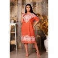 Туника прямого силуэта, с округлой горловиной, с разрезами в нижней части боковых швов. Горловина и низ рукавов обработаны бейкой из основного полотна.