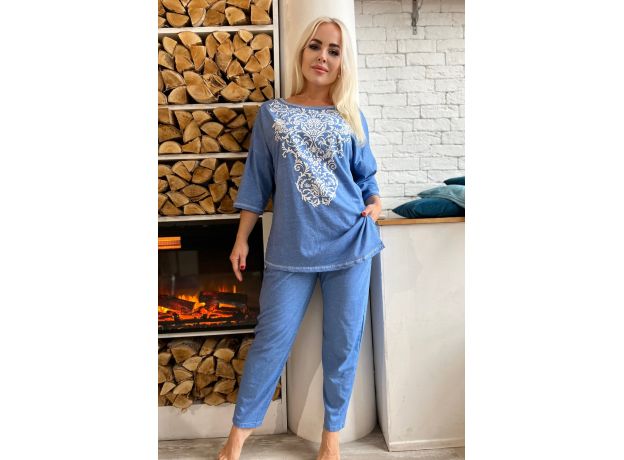 Туника прямая, свободная, с округлой горловиной, с асимметричным низом. Рукав длиной 3/4. Горловина обработана бейкой из основного полотна.