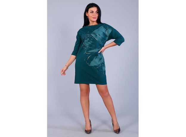 Туника женская с оригинальным принтом в виде большого цветка, из футера с лайкрой 2-х нитки высокого качества пенье. Модель слегка приталенного силуэта, горловина в виде лодочки обработана обтачкой, спущенная пройма, 3/4 рукав. Стильная туника отличный офисный вариант для деловой, современной девушки.