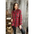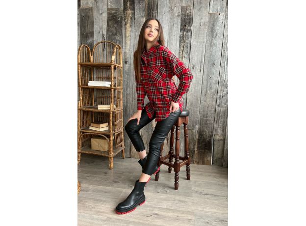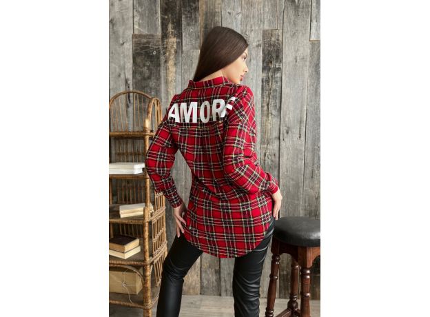 Женская туника-рубашка на пуговицах, с отложным воротником, свободная, с удлиненной спинкой и фигурной линией низа. Рукав удлиненный, на манжете.
