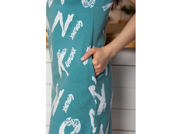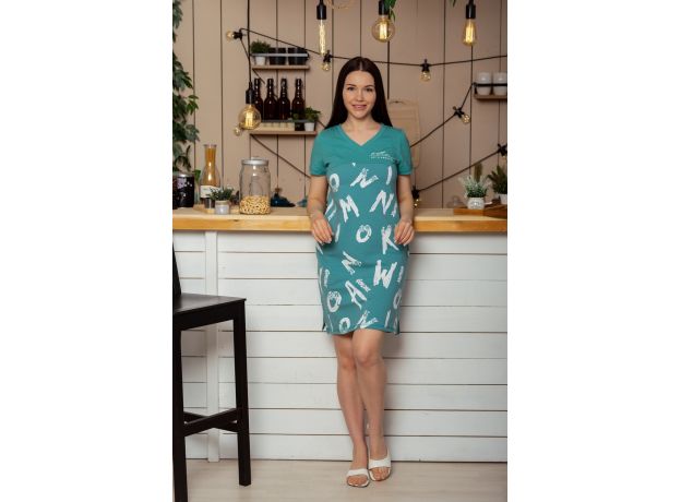 Туника полуприлегающего силуэта, с боковыми карманами, средней длины, с V-образной горловиной. Рукав втачной. На полочке и спинке расположены кокетки из отделочного полотна. В нижней части боковых швов обработаны разрезы. Горловина обработана обтачкой.