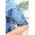 Туника прямая, свободная, с округлой горловиной, с удлиненной спинкой. Рукав короткий, с манжетом и хлястом с пуговицей. В верхней части полочки обработаны декоративные защипы. Спинка с кокеткой. В нижней части боковых швов расположены разрезы. Горловина обработана бейкой из основного полотна.