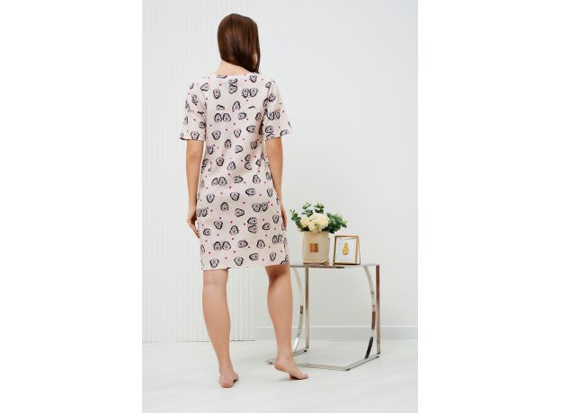 Туника прямого силуэта, с V-образной горловиной. Рукав короткий. Спинка с кокеткой. В нижней части боковых швов обработаны разрезы. Горловина обработана обтачкой из основного полотна.