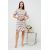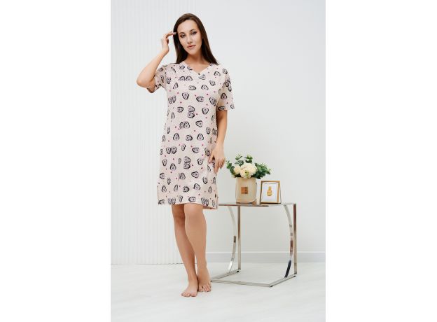 Туника прямого силуэта, с V-образной горловиной. Рукав короткий. Спинка с кокеткой. В нижней части боковых швов обработаны разрезы. Горловина обработана обтачкой из основного полотна.