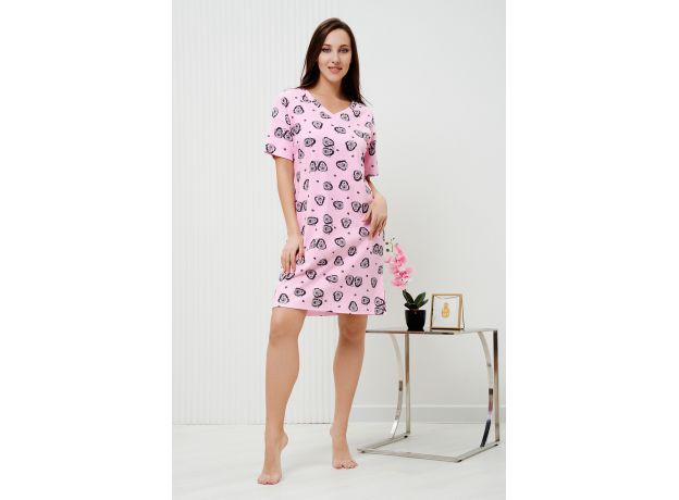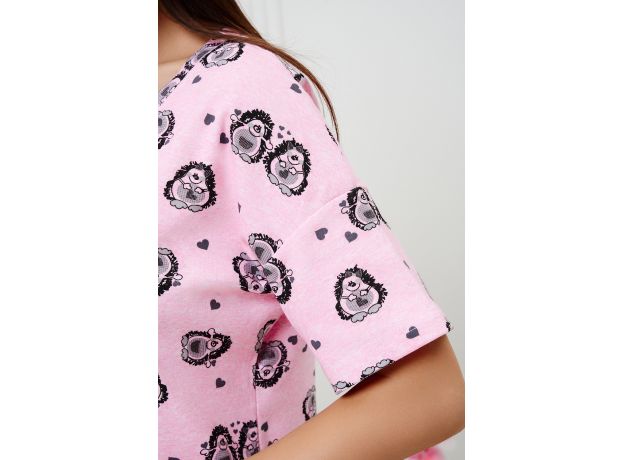 Туника прямого силуэта, с V-образной горловиной. Рукав короткий. Спинка с кокеткой. В нижней части боковых швов обработаны разрезы. Горловина обработана обтачкой из основного полотна.