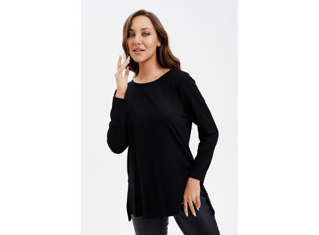 Туника прямого силуэта, с округлой горловиной, с разрезами в нижней части боковых швов. Спинка с кокеткой, удлиненная. Рукав втачной, длинный. Горловина обработана бейкой из основного полотна.