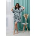 Туника в стиле оверсайз. Прямая, свободная, длиной выше колена, с капюшоном. На капюшоне расположены ушки. Рукав короткий. В нижней части боковых швов обработаны разрезы.