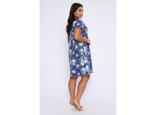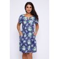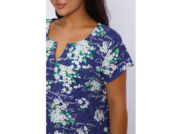 Женская туника из хлопковой ткани с красивой расцветкой. На полочке кокетка с разрезом, который очень интересно смотрится. По боковому шву карман, рукав короткий. Туника прекрасно подойдет для дома, дачи и отдыха.
