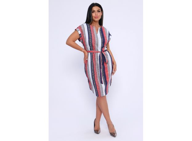 Женское платье - туника прямого силуэта со спущенным цельнокроеным рукавом, отделанным манжетой, длиной до колен и не фиксированным на талии поясом. По бокам овальные разрезы. Горловина отделана обтачкой. На полукруглом декольте имеется декоративный V-образный вырез. Туника не стесняет движений, выгодно подчеркивает фигуру и скрывает недостатки, прекрасно подходит беременным. Тунику можно носить дома, на даче, на пляже, а также, как платье на выход, на прогулку и просто для уличного ношения. Прекрасный подарок для любимых женщин!