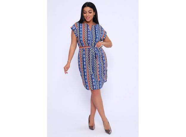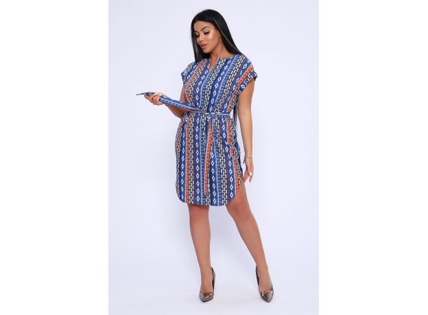 Женское платье - туника прямого силуэта со спущенным цельнокроеным рукавом, отделанным манжетой, длиной до колен и не фиксированным на талии поясом. По бокам овальные разрезы. Горловина отделана обтачкой. На полукруглом декольте имеется декоративный V-образный вырез. Туника не стесняет движений, выгодно подчеркивает фигуру и скрывает недостатки, прекрасно подходит беременным. Тунику можно носить дома, на даче, на пляже, а также, как платье на выход, на прогулку и просто для уличного ношения. Прекрасный подарок для любимых женщин!