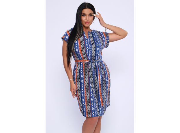 Женское платье - туника прямого силуэта со спущенным цельнокроеным рукавом, отделанным манжетой, длиной до колен и не фиксированным на талии поясом. По бокам овальные разрезы. Горловина отделана обтачкой. На полукруглом декольте имеется декоративный V-образный вырез. Туника не стесняет движений, выгодно подчеркивает фигуру и скрывает недостатки, прекрасно подходит беременным. Тунику можно носить дома, на даче, на пляже, а также, как платье на выход, на прогулку и просто для уличного ношения. Прекрасный подарок для любимых женщин!