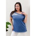 Туника женская полуприлегающего силуэта. Рукав цельнокроеный короткий, с одной стороны бретель на плече, в боковых швах разрезы. В верхней части полочки модный принт.