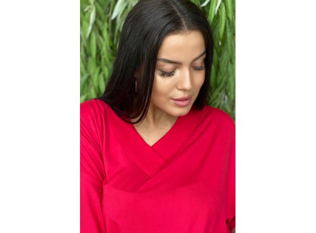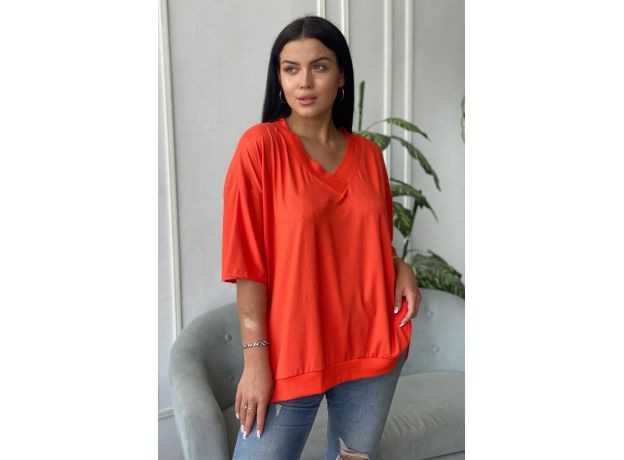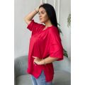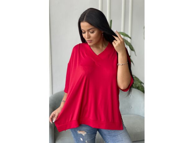 Туника женская прямого силуэта, оверсайз. Вырез Y-образный. Рукав рубашечного покроя. В боковых швах разрезы.
