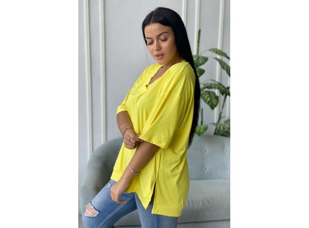 Туника женская прямого силуэта, оверсайз. Вырез Y-образный. Рукав рубашечного покроя. В боковых швах разрезы.