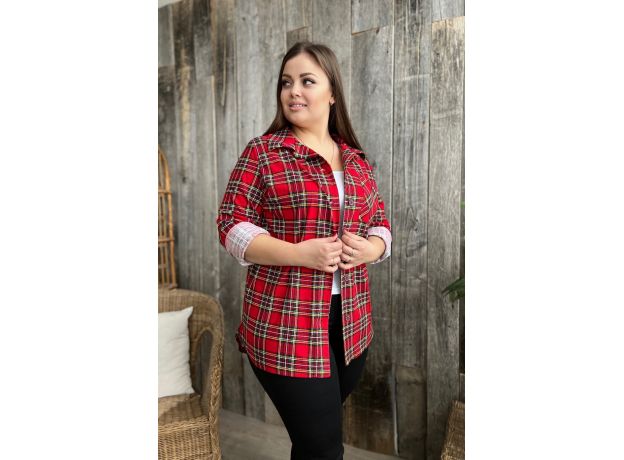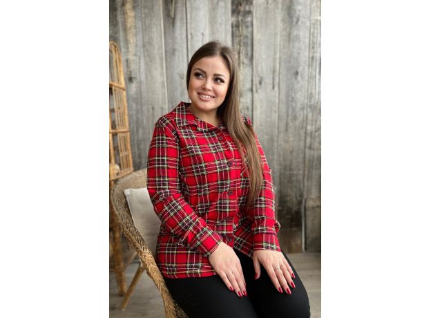 Туника женская прямого силуэта с отложным воротником. Застежка на петли - пуговицы. Рукав длинный, втачной с манжетой. Низ туники фигурный, спинка несколько длиннее полочки. На полочке нагрудный карман. На модели 52 размер