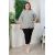 Туника женская, слегка расширенная к низу, с капюшоном. Застежка на петли пуговицы. Рукав со спущенной линией плеча, с цельнокроеной манжетой. На полочке и спинке кокетки. По линии притачивания кокетки полочки два внутренних кармана. Отлет капюшона и борт туники окантован широкой косой бейкой. Туника выполнена из актуальной ткани в полоску.