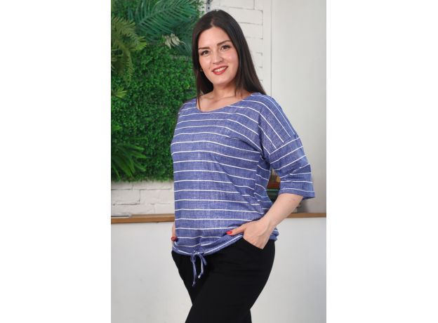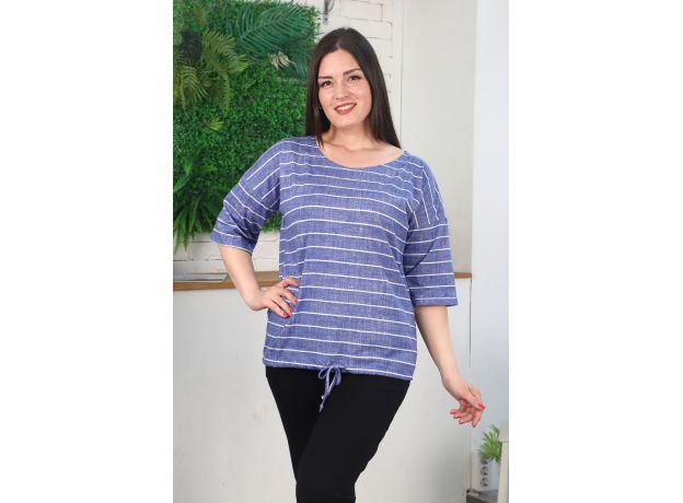Туника женская прямого силуэта. Рукав цельнокроенный со швом. Горловина круглая. Низ туники фиксируется завязками.