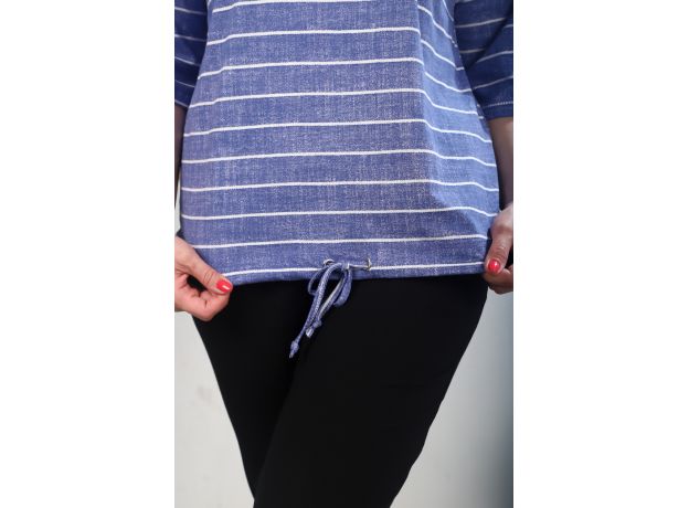 Туника женская прямого силуэта. Рукав цельнокроенный со швом. Горловина круглая. Низ туники фиксируется завязками.