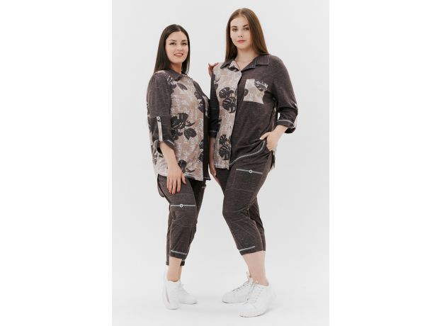 Туника женская прямого силуэта с отложным воротником. Застежка на петли-пуговицы. Рукав втачной, длина 3/4 с манжетой и хлястом. Низ туники фигурный, спинка несколько длиннее полочки. На полочке нагрудный карман.