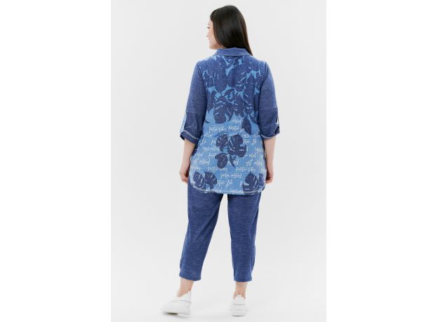 Туника женская прямого силуэта с отложным воротником. Застежка на петли-пуговицы. Рукав втачной, длина 3/4 с манжетой и хлястом. Низ туники фигурный, спинка несколько длиннее полочки. На полочке нагрудный карман.