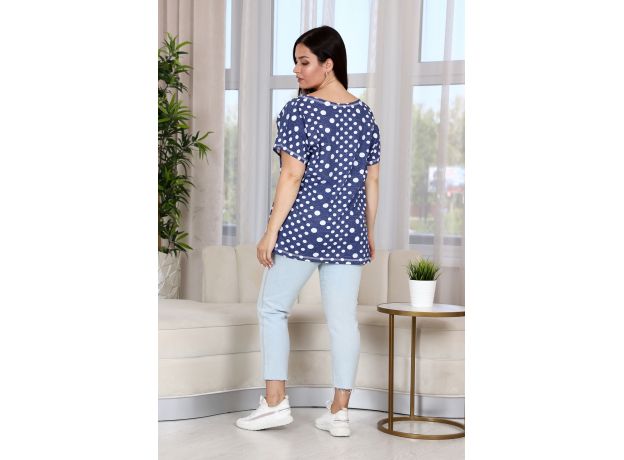 Туника женская, прямого силуэта. Рукав короткий цельнокроенный. Низ изделия регулируется двумя завязками, по боковым швам разрезы