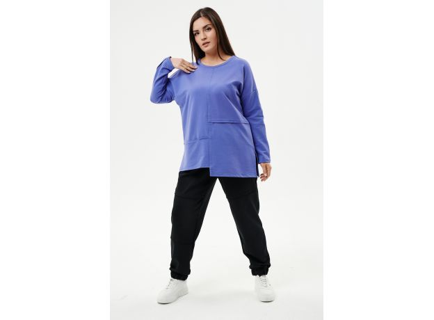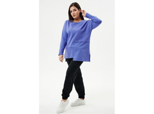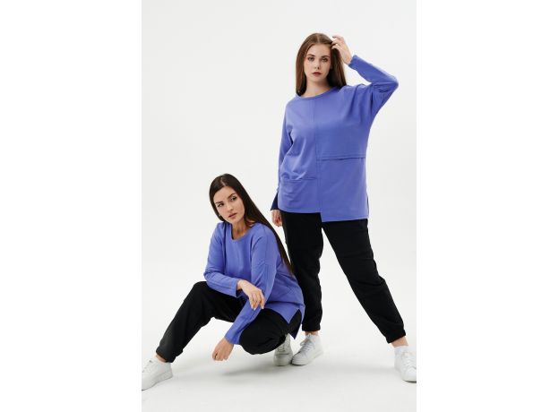 Туника прямого силуэта, горловина круглая, рукав длинный, цельнокроенный со швом, состоит из передней и задней частей. Полочка из четырех частей: на правой части внутренний горизонтальный карман в шве, на левой горизонтальный шов с открытыми срезами, аналогичный шов на спинке. В боковых швах разрезы.