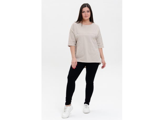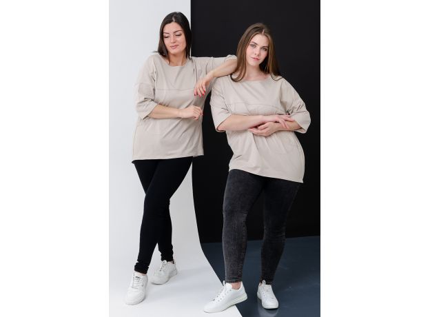 Туника женская полуприлегающего силуэта. Горловина округлая. Рукав цельнокроеный со швом, 3/4. На полочке кокетка. Внутренний карман с обтачкой в фигурном шве притачивания боковой части полочки к нижней части полочки. Спинка длиннее полочки.