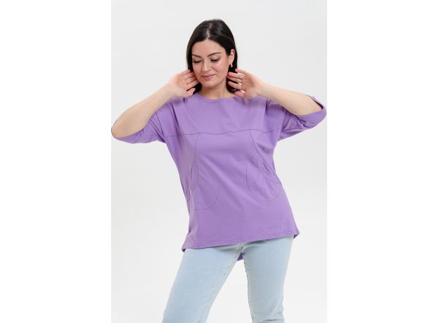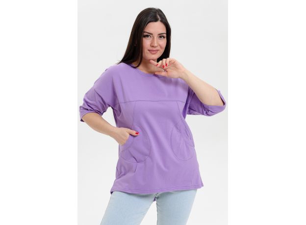 Туника женская полуприлегающего силуэта. Горловина округлая. Рукав цельнокроеный со швом, 3/4. На полочке кокетка. Внутренний карман с обтачкой в фигурном шве притачивания боковой части полочки к нижней части полочки. Спинка длиннее полочки.