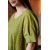 Туника женская, свободная, расклешенная к низу, в стиле бохо. Рукав реглан с тремя складками, на манжете, короткий. Горловина округлая. На полочке два накладных кармана с обтачкой , вверху на кармане встречная складка, внизу сборка. Низ туники фиксируется завязками.
