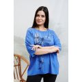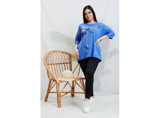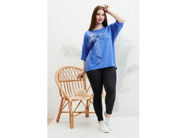 Туника женская прямого силуэта. Рукав цельнокроеный со швом. Горловина округлая. Низ фигурный. На полочке модный принт.