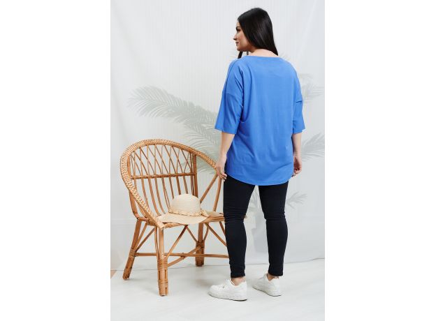 Туника женская прямого силуэта. Рукав цельнокроеный со швом. Горловина округлая. Низ фигурный. На полочке модный принт.
