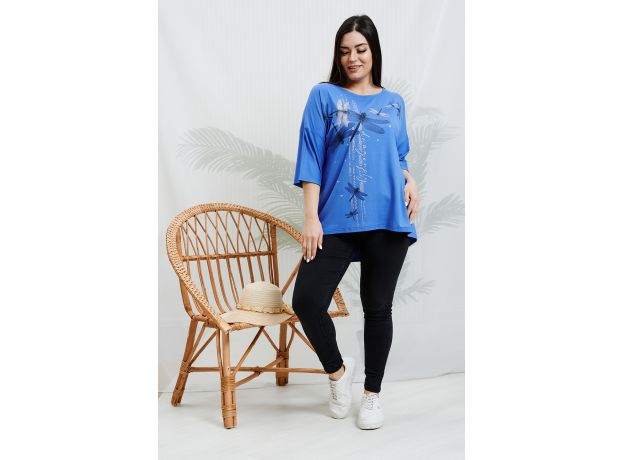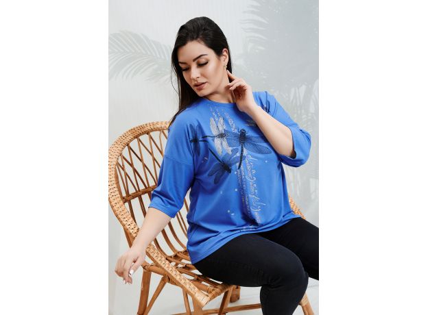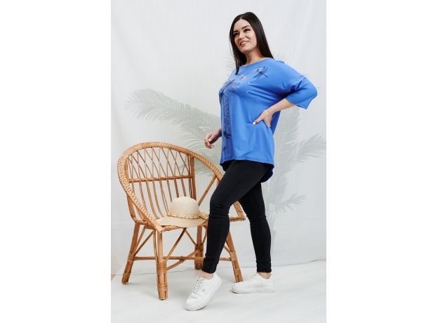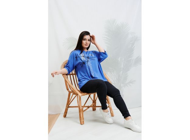 Туника женская прямого силуэта. Рукав цельнокроеный со швом. Горловина округлая. Низ фигурный. На полочке модный принт.