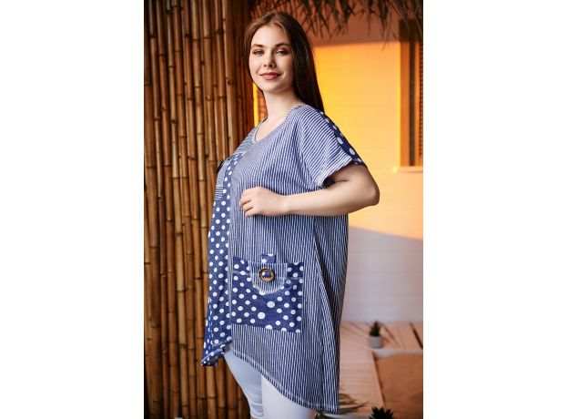 Туника 9199 полоса горох джинс/52