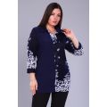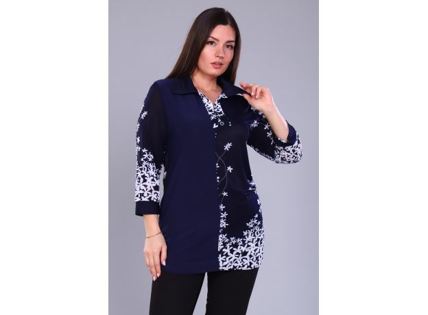 Туника комбинированная, рукав 3/4 с манжетом, отложной воротничок, низ изделия округлый.