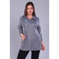 Туника теплая прямого покроя. Передняя полочка с вертикальной и горизонтальной полосой. Отложной воротник, рукав ниже локтя, на манжете.