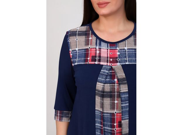 Оригинальная туника с эффектом 2 в 1, круглый вырез отделан окантовкой, рукав 3/4 на манжете. Очень удобная и скроет все недостатки.