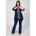 Оригинальная туника с эффектом 2 в 1, круглый вырез отделан окантовкой, рукав 3/4 на манжете. Очень удобная и скроет все недостатки.