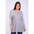 Туника прямая на кокетке спереди, округлая горловина отделана кантиком, спущенный рукав 3/4 на манжете. Красивое сочетание двух тканей