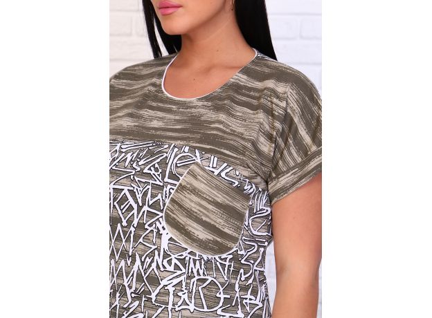 Женская туника со спущенной проймой, на кокетке выпущен кант. На полочке карман.