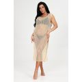 Пляжная легкая женская туника, выполненная из сетки - это универсальный предмет гардероба, который свободно облегает фигуру. Горловина с округлым вырезом. Туника удлиненная, по бокам разрезы, которые дополняют пляжный образ.